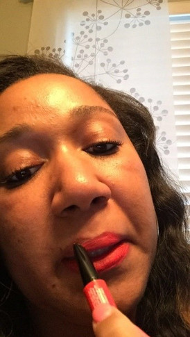 I tried the Super Cliquey Matte Lipsticks first. Because I love a good red lip, I tried the color “snarky” first. The nuance behind this lip color is that there is a button on the end that you click to get the color to come up. It took me quite a few clicks to get the color to come out at first but I got the hang of it after a while. The color finally began to emerge from the other end.